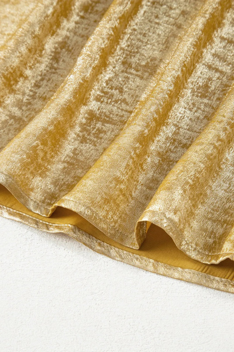 Metallic Gold Short Sleeve Casual Blouse